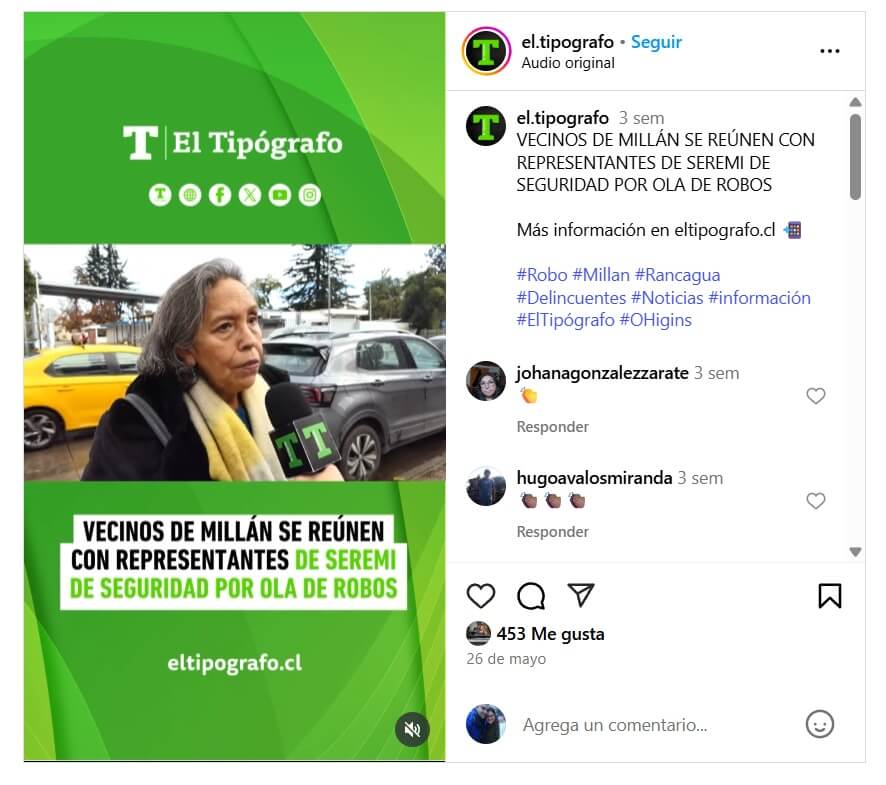 VECINOS DE MILLÁN SE REÚNEN CON REPRESENTANTES DE SEREMI DE SEGURIDAD POR OLA DE ROBOS